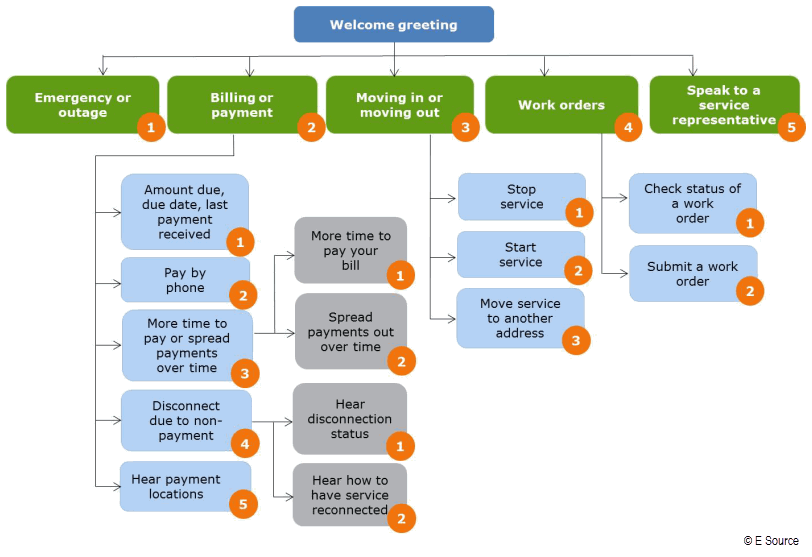 Your interactive voice response system (IVR) menu needs to clearly and quickly direct customers to a solution. We’ve created a sample utility IVR menu with customer-friendly options that you can use as a guide to updating your IVR menu with solar and EV options (figure 1).